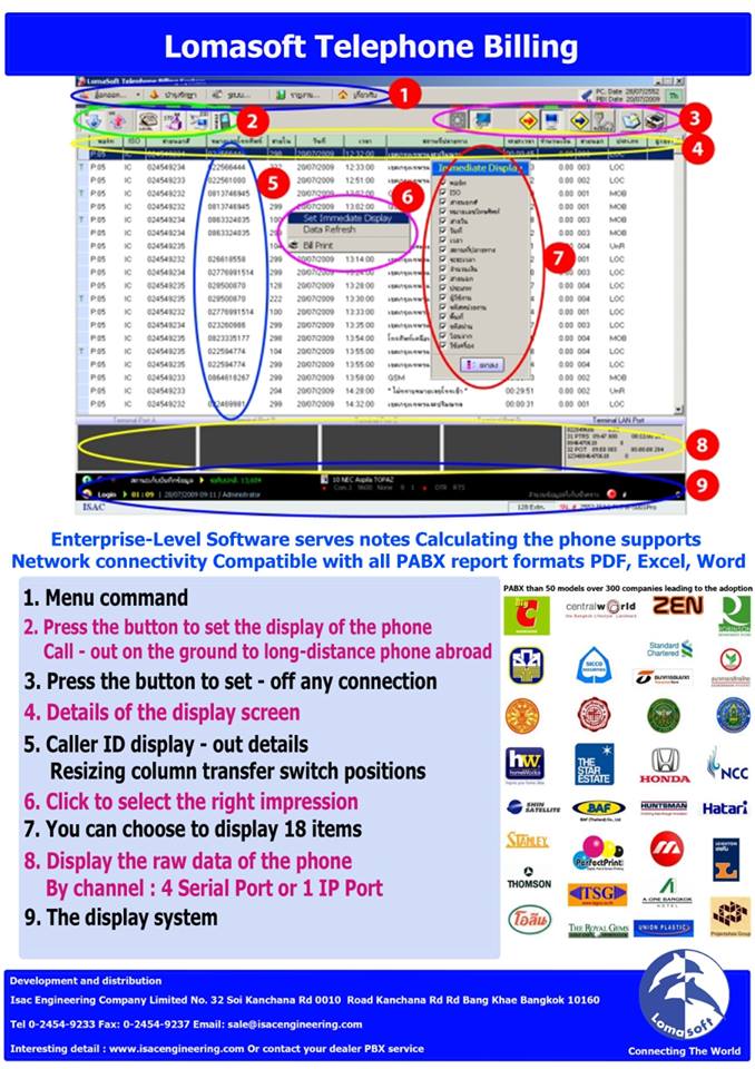 - รับข้อมูลการใช้งานโทรศัพท์ ได้ 4 ตู้สาขา ( 4 COM Port , 1 LAN )