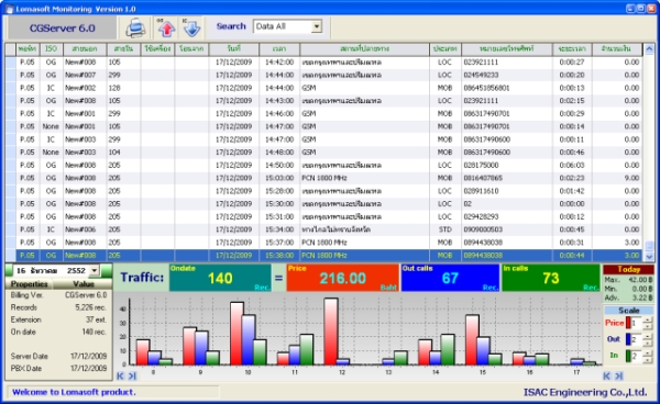 - การบริหาระบบฐานข้อมูลระดับ Server โดยใช้ MySQL และ เก็บข้อมูลดิบ ( Text File ) ที่ส่งจาก PBX ไว้ต่างหาก