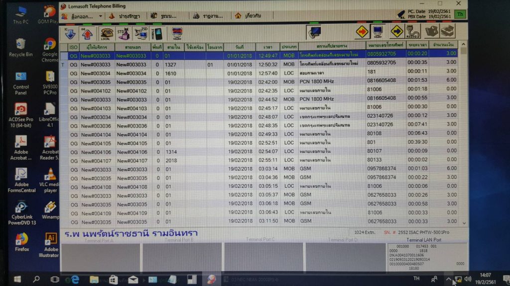 Lomasoft Telephone Billing ( ติดตั้งใหม่ 1024 Extension บน Windows 10 )