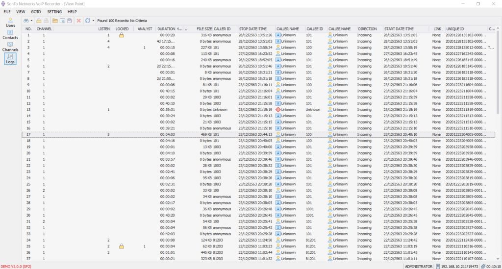 – ระบบสร้างดัชนีของไฟล์เสียงอัตโนมัติ ทำให้สะดวกในการตรวจสอบและค้นหา โดยสามารถค้นหาได้หลายเงื่อนไข เช่น เบอร์ที่โทรเข้ามา, เบอร์ภายในที่รับสาย, Agent ที่รับสาย, วันที่-เวลา หรือระยะเวลาที่สนทนา เป็นต้น