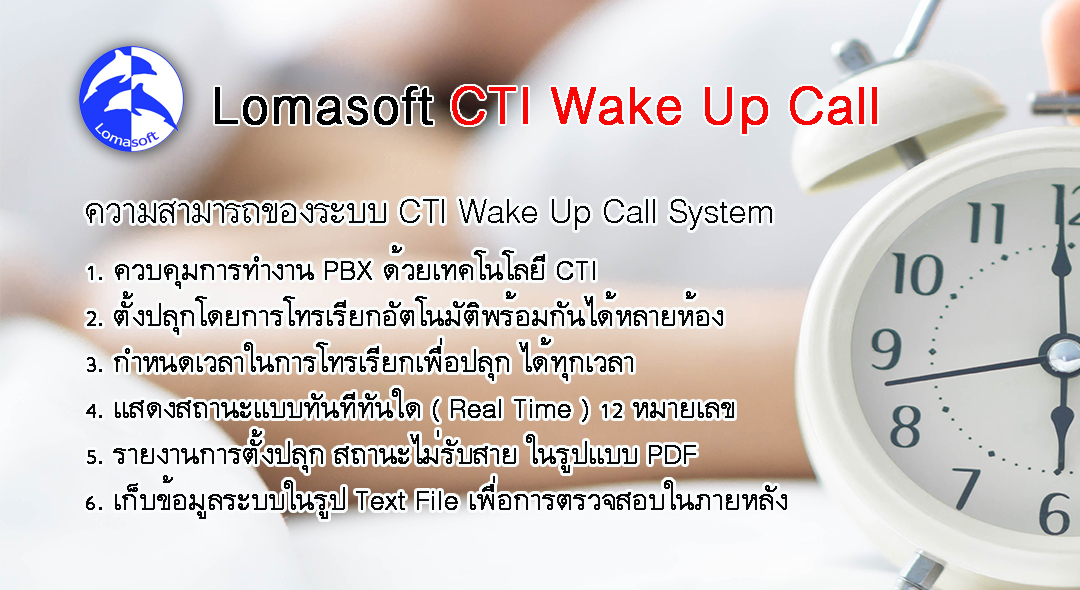 Lomasoft CTI Wake Up Call āđāļāļĢāđāļāļĢāļĄāļāļąāđāļāļāļĨāļļāļāļāļēāļāđāļāļĢāļĻāļąāļāļāđāļāļąāļāđāļāļĄāļąāļāļī